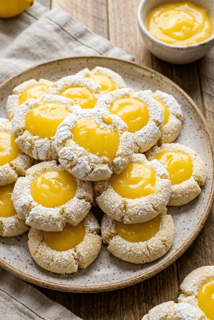 Bright, tangy lemon curd paired with a soft cookie base creates the perfect balance to cut through richer desserts on the table.
