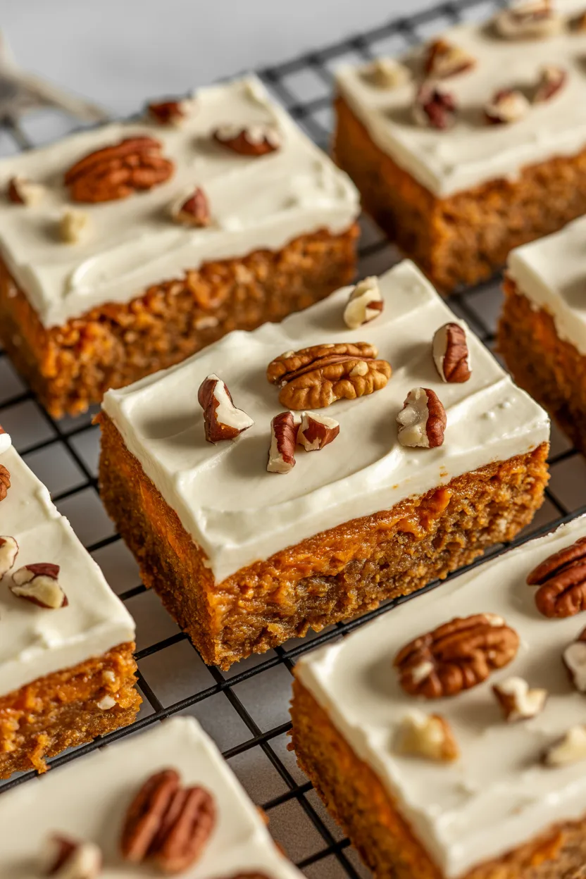 These carrot cake blondies balance rich texture with bright flavor — a unique twist on classic spiced desserts that’s ideal any time of year.
