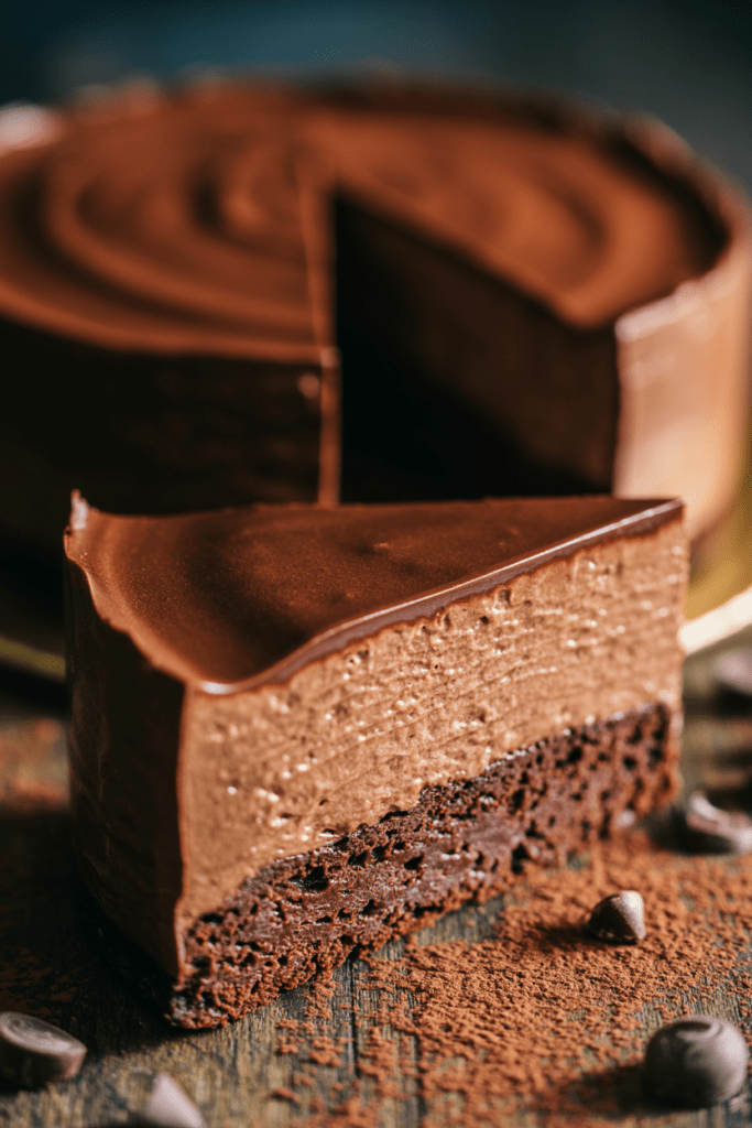 This chocolate mousse cake is pure decadence, layering a moist chocolate cake base with a thick cloud of light and fluffy chocolate mousse before finishing it with a glossy chocolate ganache topping. The combination of airy mousse and rich cake creates a dessert that feels both elegant and deeply chocolatey, making it a perfect centerpiece for a dessert table or celebration spread. You can see the full recipe at Butternut Bakery.