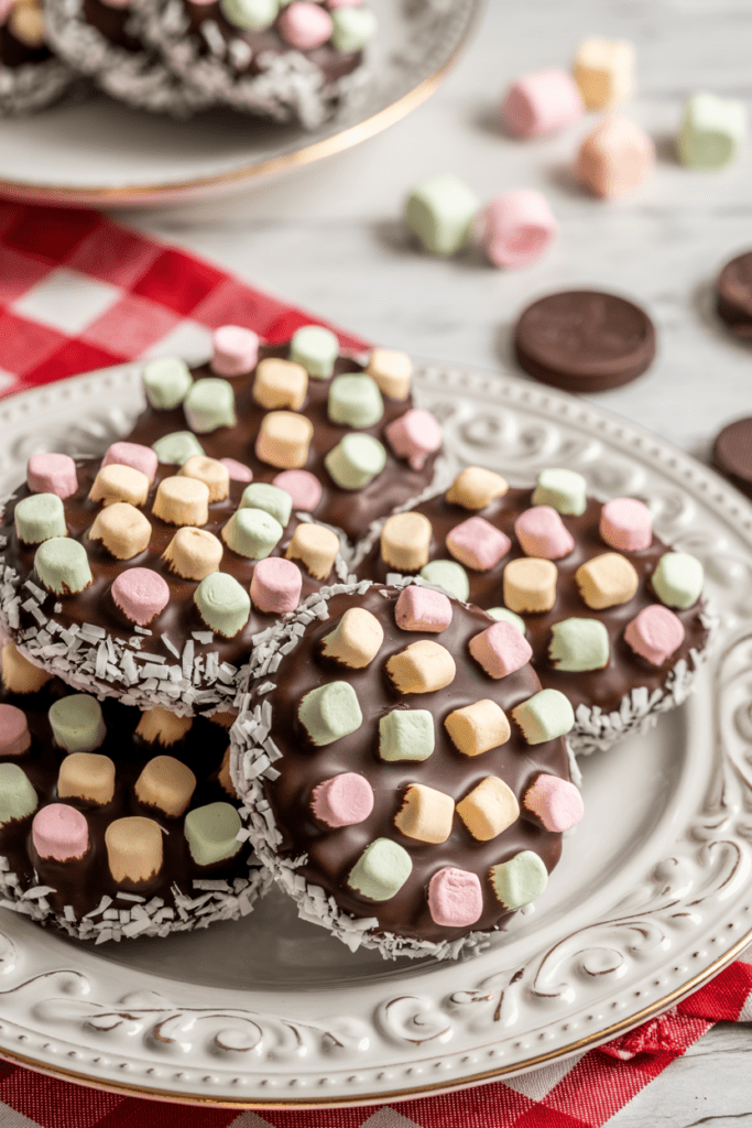 Chocolate church window cookies are a nostalgic dessert that always grabs attention on a dessert table. Made with melted chocolate, colorful mini marshmallows, and rolled in coconut, each slice reveals a beautiful stained-glass effect that’s both fun and delicious. They’re easy to prepare ahead of time and slice into perfect bite-sized treats for parties and potlucks. Find the full recipe at The First Year Blog.