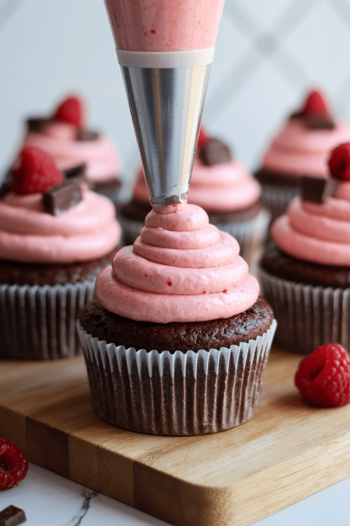 Chocolate raspberry cupcakes are a classic dessert pairing that feels both rich and refreshing. These moist chocolate cupcakes are filled with sweet raspberry jam and topped with raspberry buttercream before being finished with a drizzle of chocolate ganache. The tart raspberry filling balances the deep chocolate flavor perfectly, creating a dessert that feels elegant while still being easy to serve at parties or dessert tables. You can find the full recipe at Chelsweets.