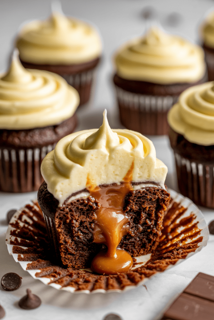 Chocolate caramel cupcakes bring together two of the most irresistible dessert flavors in one perfectly portioned treat. These moist chocolate cupcakes are filled with a rich, buttery caramel center and topped with a light caramel mascarpone frosting that balances sweetness with creamy texture. The result is a decadent yet elegant dessert that works beautifully for parties, dessert tables, or anytime you want something a little extra special. You can see the full recipe at Spatula Desserts.