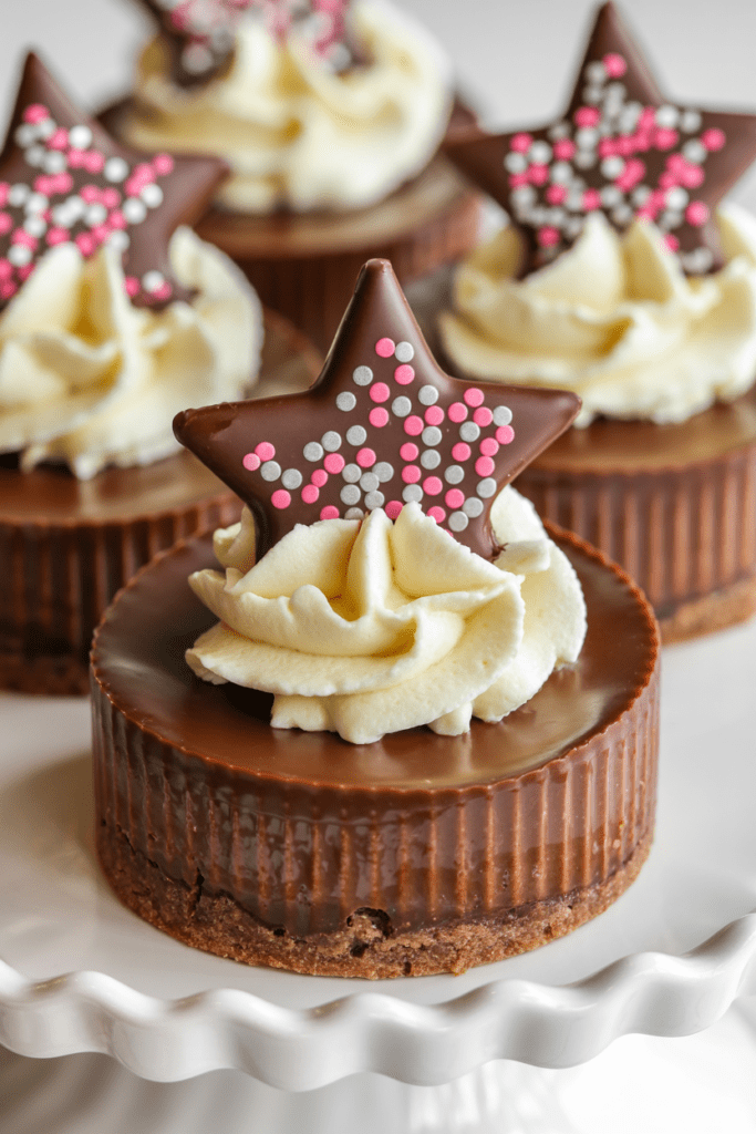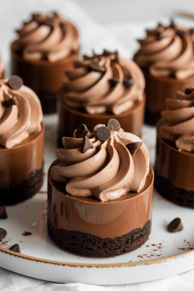 These elegant mini chocolate dessert cakes are a perfect choice when you want something rich yet easy to serve for a crowd. With a smooth chocolate layer over a soft brownie-style base and topped with a swirl of cream, each little cake feels like a bakery-style treat without the need to slice a large dessert. Their individual portions make them ideal for dessert tables, parties, or holiday gatherings. You can find the full recipe at Erren’s Kitchen.