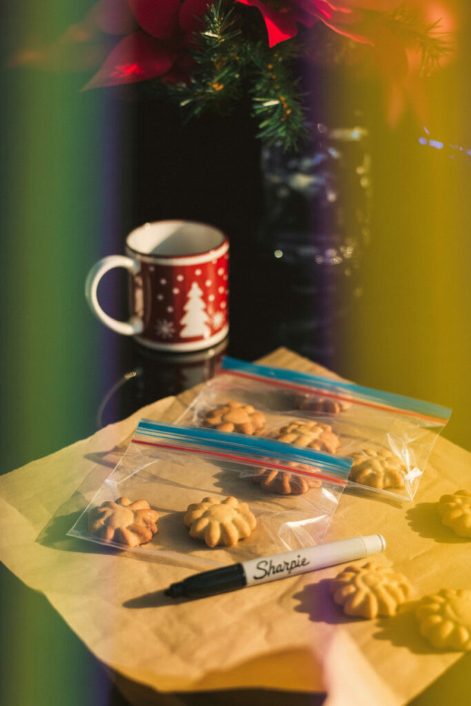 - Freezer bags with labels – Genius for portioning cookie dough balls, fudge squares, or truffles. Just make sure you label and date. These resealable freezer bags are my go-to.