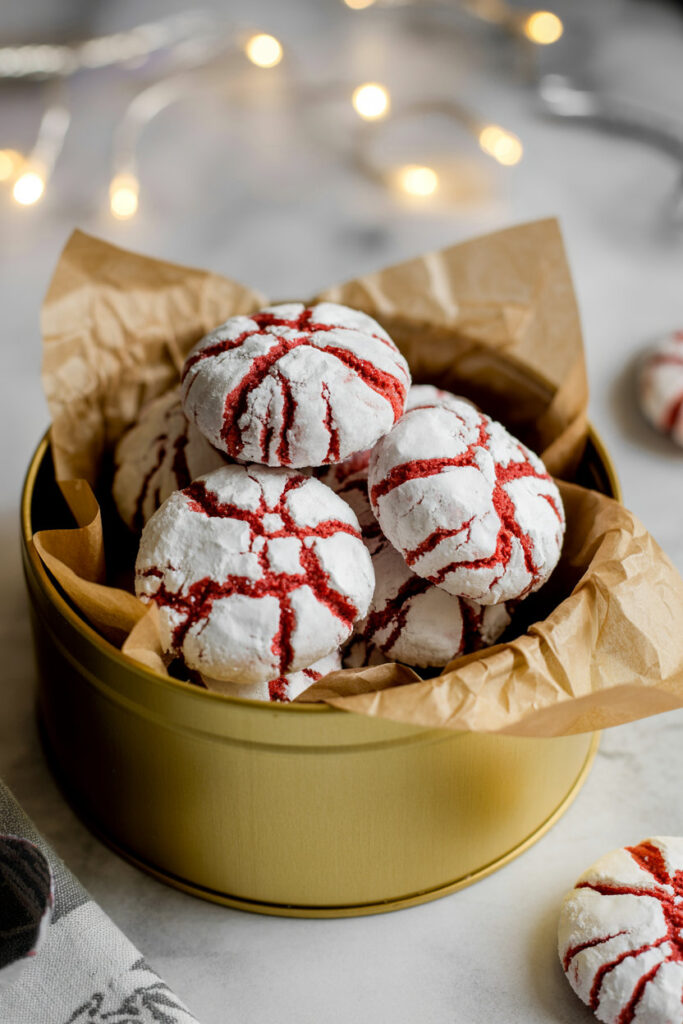 - Peppermint Crinkle Cookies – Festive, chewy, and covered in powdered sugar that somehow still looks gorgeous after thawing.