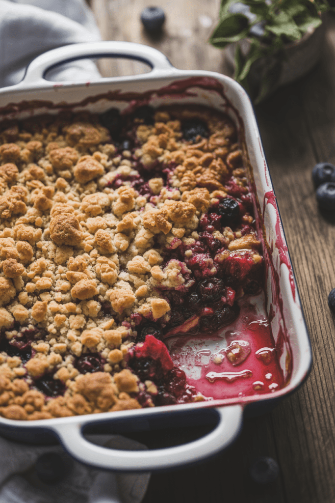 Berry crisps are one of the most forgiving fruit desserts you can make. A mix of berries—fresh or frozen—bakes down into a jammy filling topped with a golden, crunchy oat topping. It’s cozy, familiar, and works just as well for casual dinners as it does for holidays. This triple berry crisp nails the balance between sweet fruit and crisp topping.
