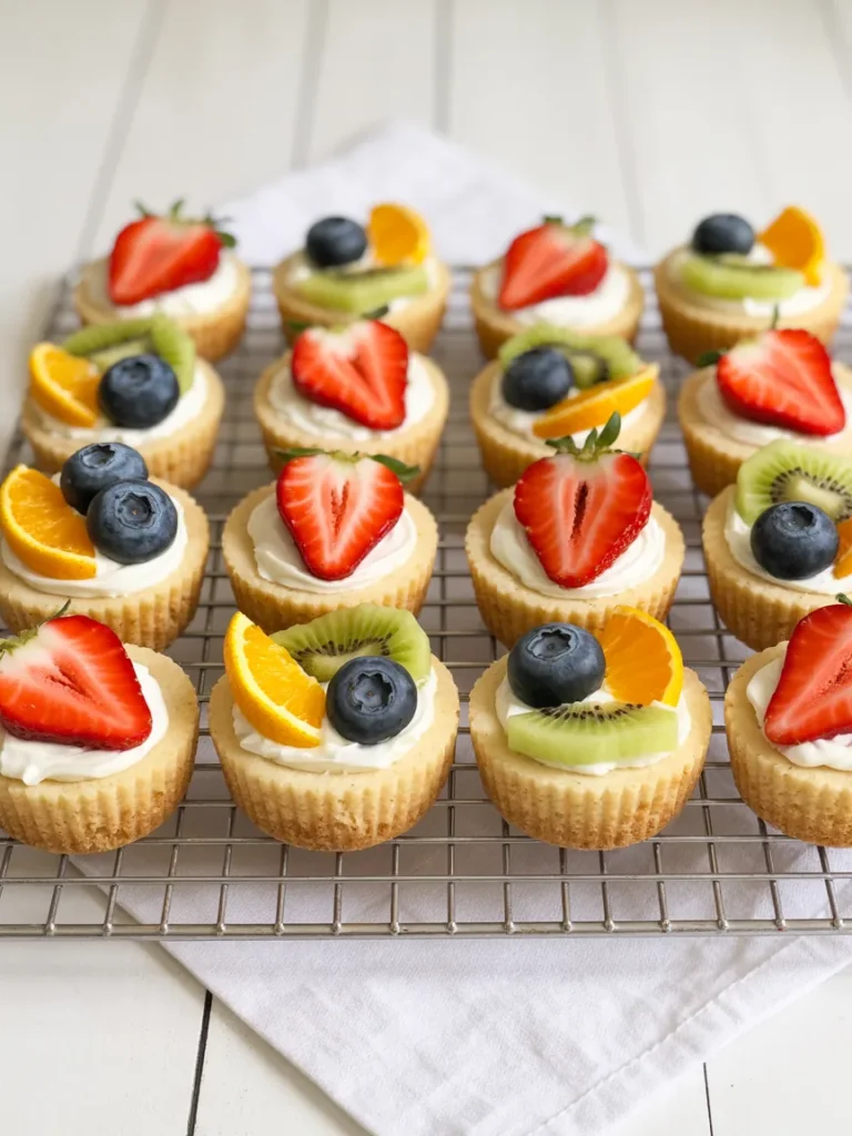 Individual fruit tarts with a sugar cookie base and fresh fruit topping—bite-size, visually perfect, and effortless to serve. These are ideal for showers, brunches, and dessert trays. See examples at Mini Sugar Cookie Fruit Tarts.
