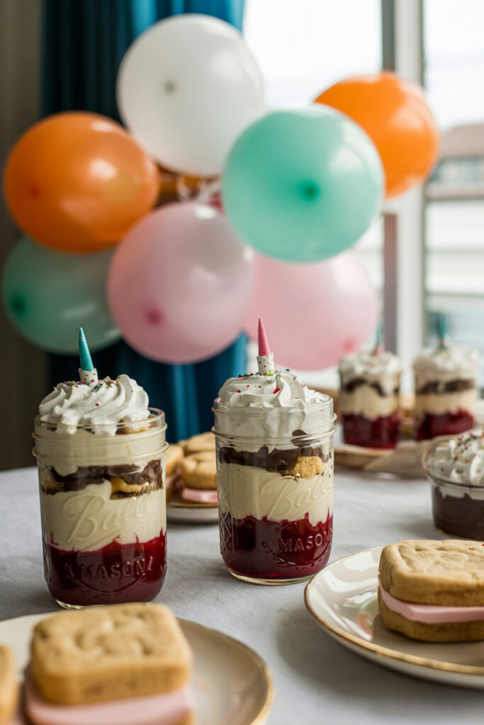 - Mini Trifles in Jars – Layer cake, pudding, and fruit into mini mason jars. They thaw evenly and look adorable on a dessert table.