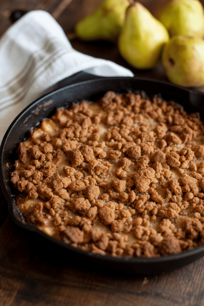 A pear crisp is the kind of dessert that asks almost nothing of you yet delivers everything you need: warmth, sweetness, and a bubbling, buttery filling under a golden oat crust. Browning the butter before mixing it with the oats adds a deep, toasty richness that pairs beautifully with the fruit. Bake it in a cast-iron skillet for extra caramelized edges. A reliable oven-safe skillet such as this cast-iron option works perfectly here.