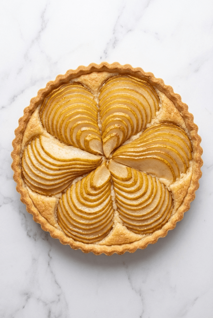This elegant Pear and Almond Tart is a classic French-inspired dessert that pairs delicate fruit with a rich, nutty filling. A buttery tart crust is filled with smooth almond cream (often called frangipane) and topped with tender slices of ripe pear that bake into the filling as the tart turns golden in the oven. The result is a beautifully balanced dessert with layers of flavor — crisp pastry, fragrant almonds, and naturally sweet pears — making it a refined yet comforting treat that’s perfect for a dinner party or a cozy weekend bake.