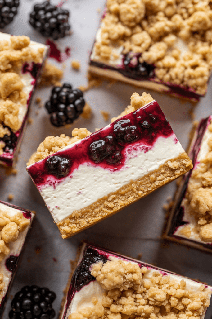 Blackberry Pear Crumble Cheesecake Bars