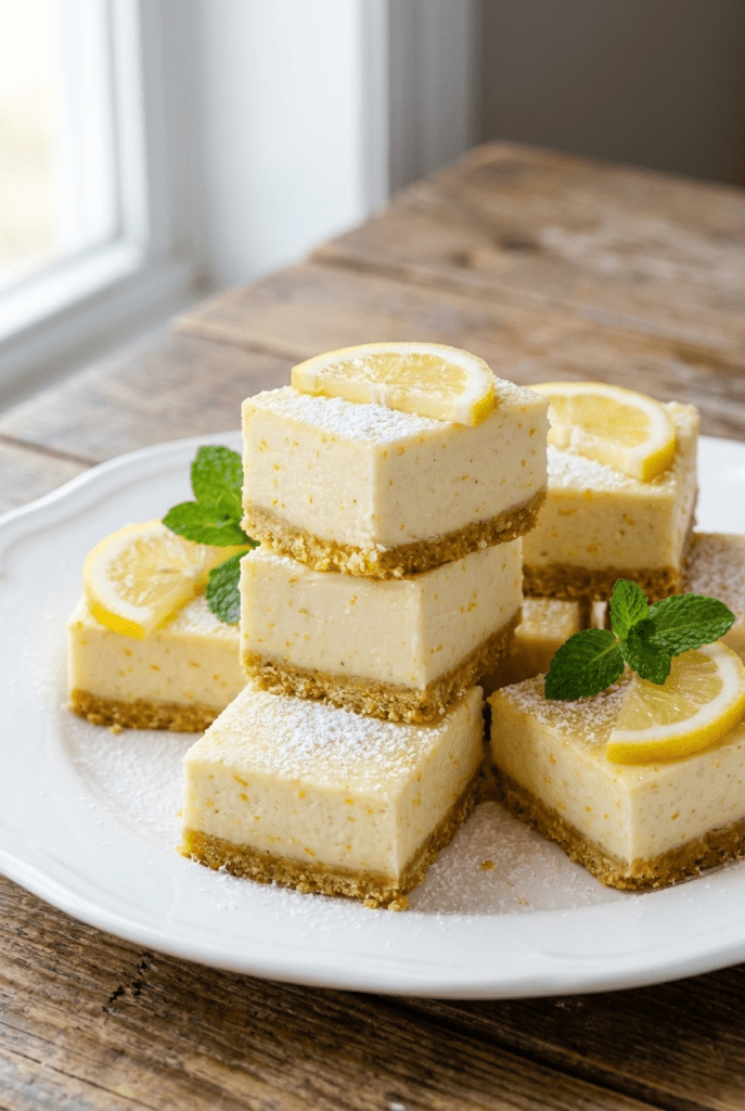 The texture is what really sets these apart. Instead of a classic baked filling, this version uses blended cashews and coconut-based ingredients to create a smooth, almost cheesecake-like layer that’s rich without feeling heavy. Paired with a lightly sweet, nutty crust, every bite is tangy, creamy, and perfectly balanced—not overly sweet like traditional lemon bars can be.