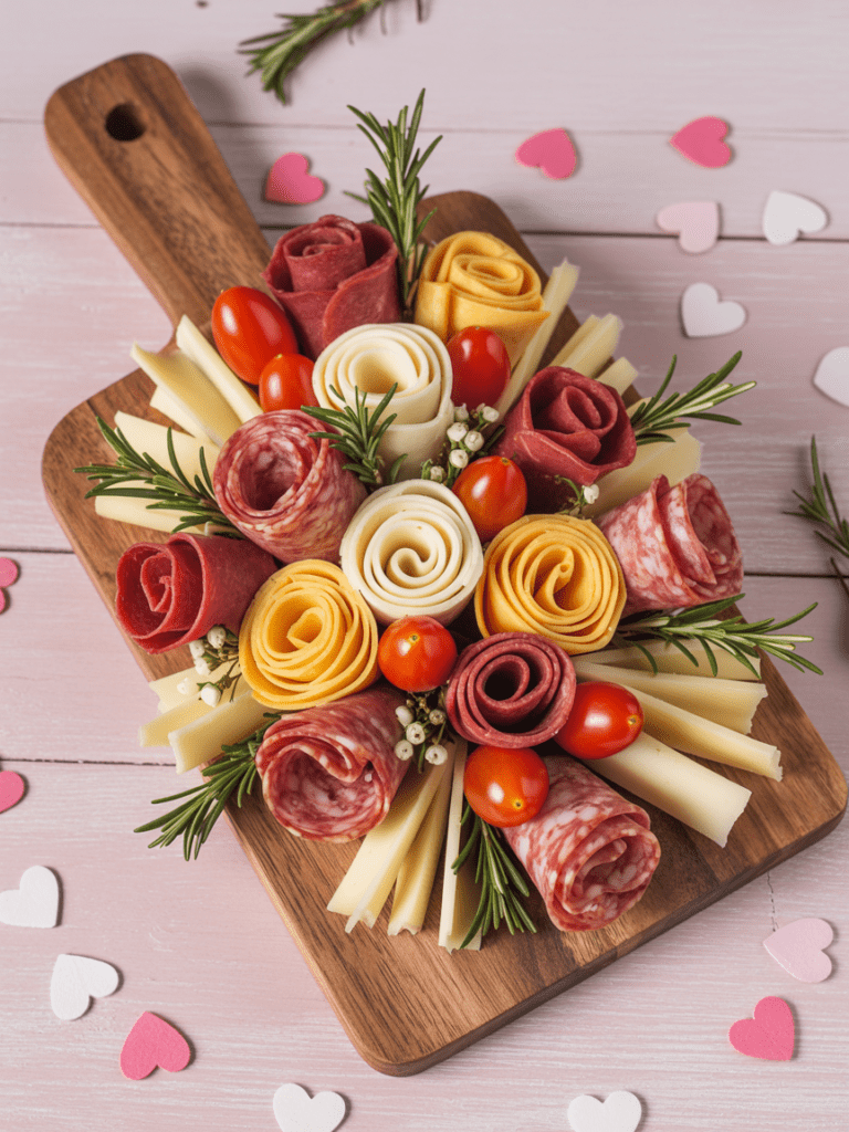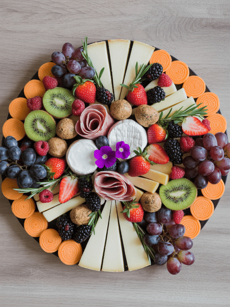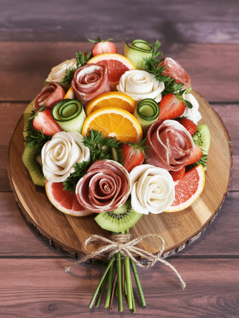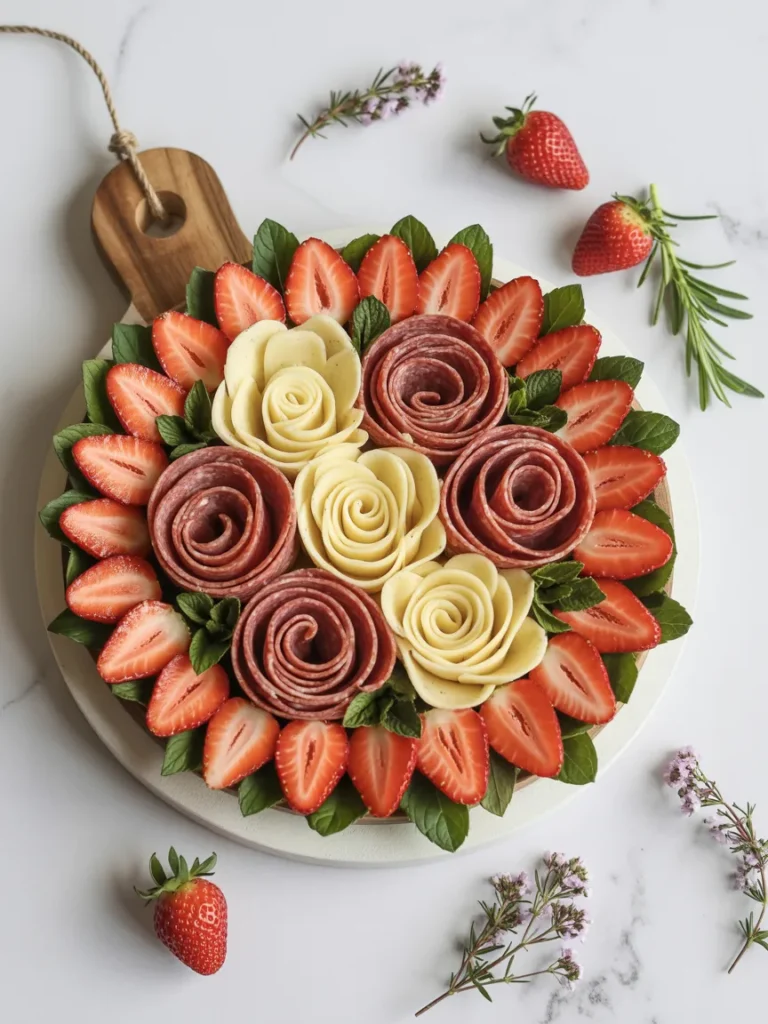 A Flower Charcuterie Board isn’t about adding flowers randomly. It’s about shaping your ingredients into blooms. It turns food into design.