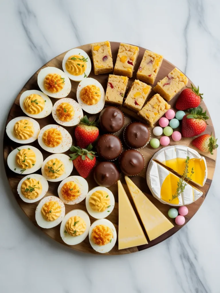 The key to strong Easter Charcuterie Board Ideas is balance. You don’t want a sugar overload, but you also don’t want it to feel like a standard appetizer tray. A mix of creamy cheese, tart citrus, and soft cake creates contrast in every bite.