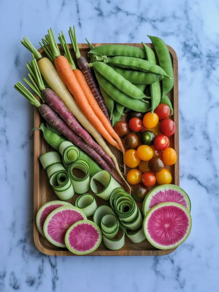 This is where Veggie Charcuterie Board Ideas shine — color-forward, texture-heavy, and anything but boring.