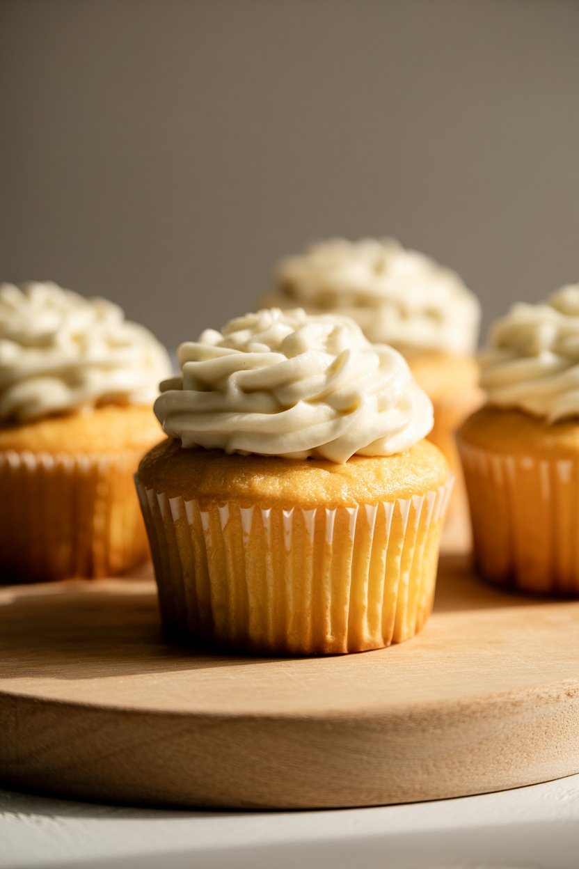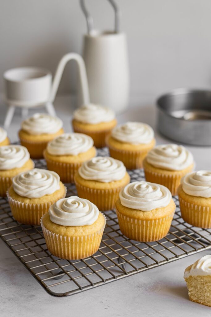 Warm kitchens can soften buttercream quickly. Chill the frosting for a few minutes, rewhip, and make sure the cupcakes are fully cooled before decorating. A touch of extra powdered sugar can help stabilize the texture.